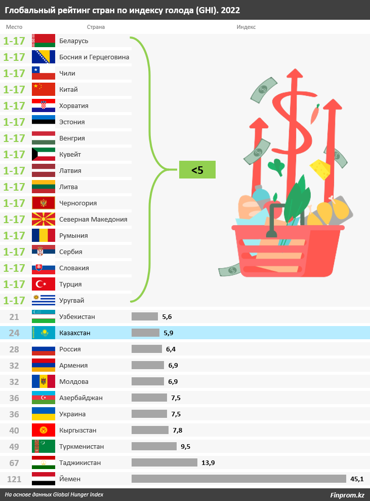 Чем ниже индекс, тем менее страна подвержена опасности голода.