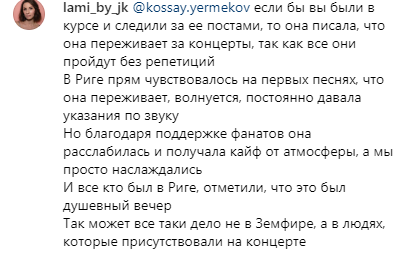 Приводим далее часть поста певицы, с сохранением авторской пунктуации и орфографии: "три абсолютно разных концерта, много мыслей.
