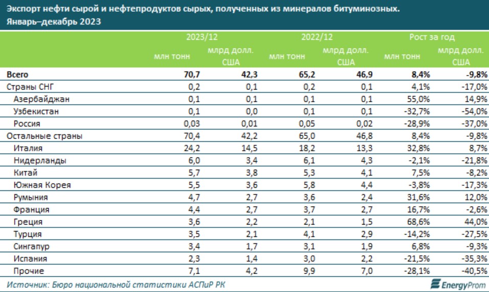 Для справки: за весь 2023 год добыча нефти в Казахстане составила 77,6 миллиона тонн, что на 7 % больше, чем за 2022 год.