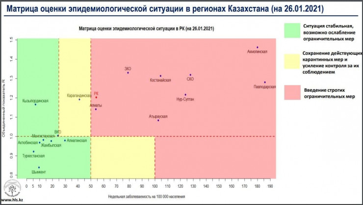 В "красной" зоне по-прежнему находятся Нур-Султан, Алматы, Акмолинская, Атырауская, Западно-Казахстанская, Костанайская, Павлодарская, Северо-Казахстанская области.