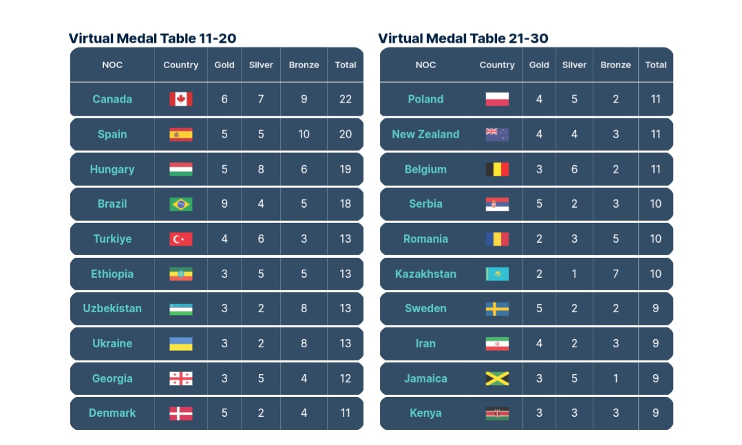 Что касается спортсменов из России и Белоруссии, то они смогут выступить на Олимпийских играх только в качестве нейтральных атлетов в ограниченном количестве. Поэтому виртуальная таблица медалей Gracenote отражает текущую ситуацию по вероятности выигрыша олимпийских медалей атлетами из этих стран с учетом имеющихся у агентства данных.