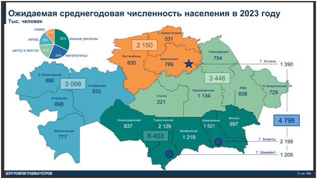 Основной рост численности рабочей силы ожидается в мегаполисах, а также в Мангистауской, Алматинской и Атырауской областях.
