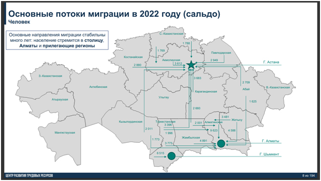 Основные направления миграции стабильны много лет: население стремится в столицу, Алматы и прилегающие регионы