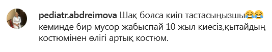 Одна такая вещь насмешила пользователей Сети. В ролике мужчина показывается "брюки от костюма", произведенные в Шымкенте в мае 1993 года, и рассказывает, что они были частью киита на тое. По словам мужчины, эти брюки оказались в его семье не в первый раз, а во второй или в третий. Автор видео также задается вопросом, сколько еще времени брюки будут путешествовать по рукам.