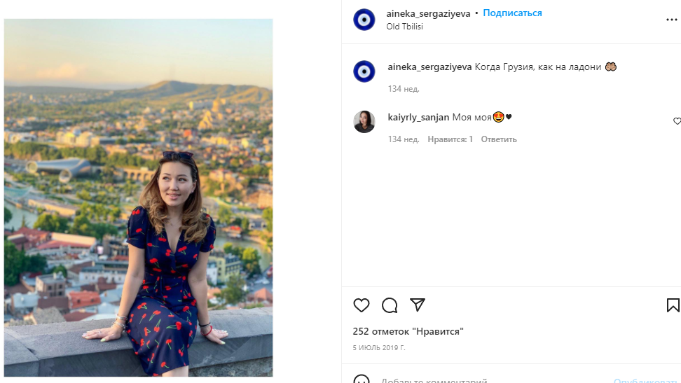 Также, судя по профилю Сергазиевой, она любит путешествовать: