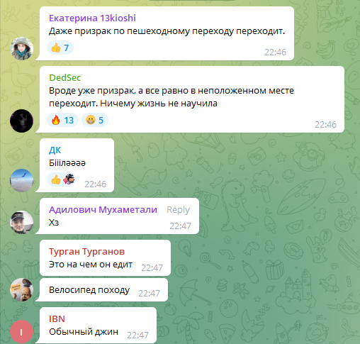В телеграм-канале kris_p_almaty_official выложили видео, на котором через проезжую часть пролетает полупрозрачный силуэт, передает медиа-портал Сaravan.kz.