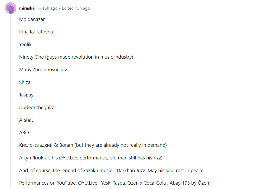 В комментариях пользователи оставили списки исполнителей, с которыми жителю США следует непременно познакомиться, сообщает Caravan.kz.