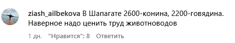 В столице конину можно приобрести по 2,6 тыс. тенге. говядину — по 2,2 тыс. Но покупатели пишут, что это цена не за мякоть, а за мясо с костями.
