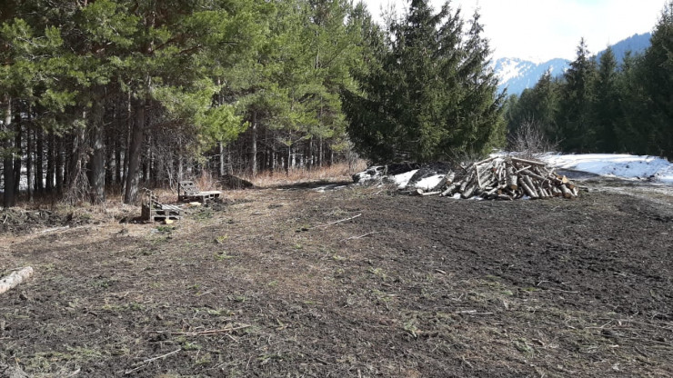 — Сжигали зеленые ветки. Кучи пепла. Это территория нацпарка Иле-Алатау. Срублено много деревьев, — говорит за кадром мужчина на видео.