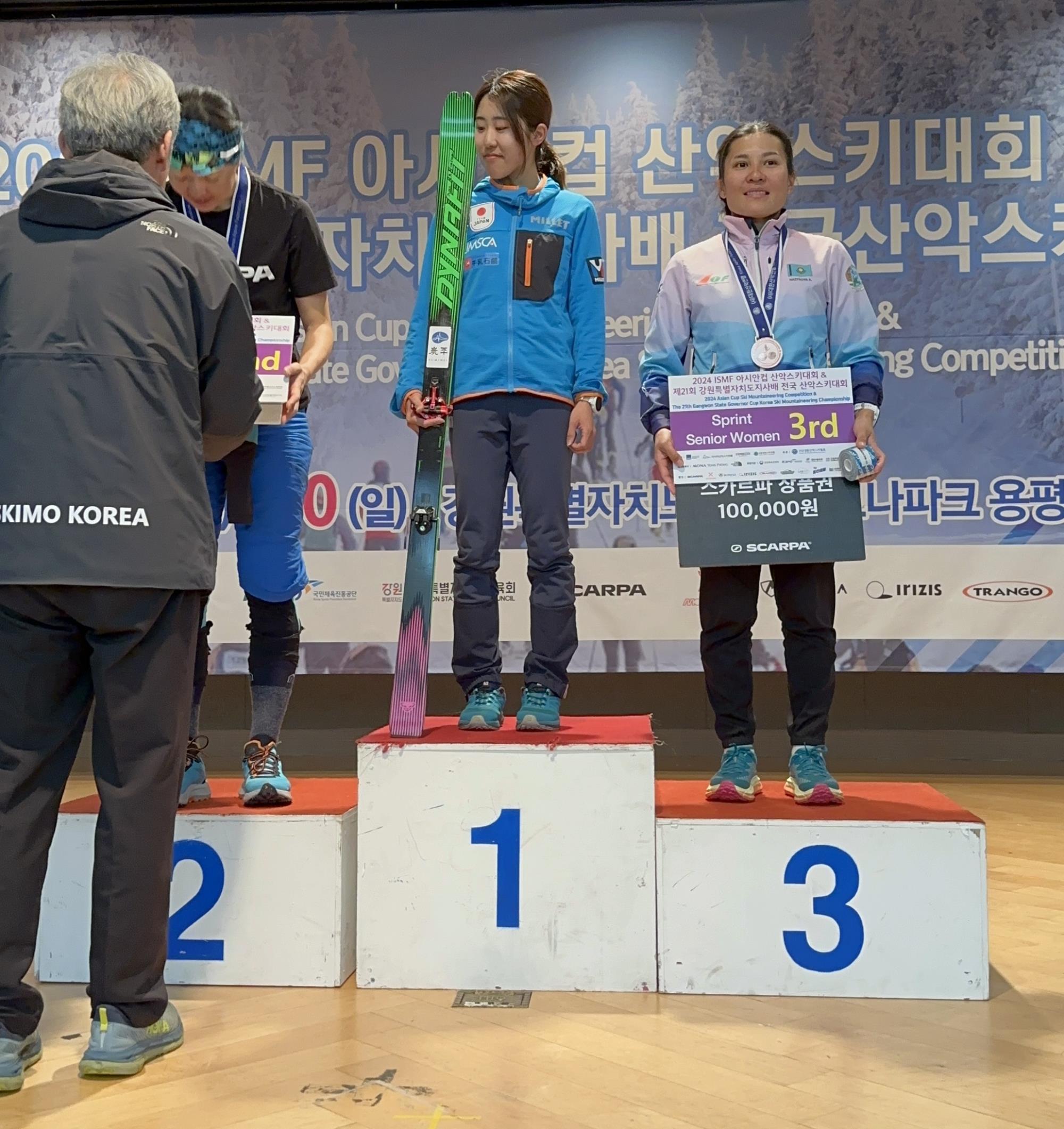 На завершившемся в южнокорейском Канвоне Кубке Азии по ски-альпинизму казахстанские спортсмены трижды поднимались на пьедестал почета. Нияз Джанзаков стал бронзовым призером в дисциплинах вертикальный километр, Асема Назурова выиграла бронзовую награду в спринте и также на вертикальном километре.