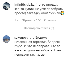 "Идёт ремонт дороги, километров тридцать от Жангизтобе. Обратили внимание, что по дороге лежит много вот таких мешков. Коробки стоят. Думали, кто перевернулся, но никого нет, только машины ездят. Когда подошли — обалдели. На мешке написано: "Взрывчатое вещество"! Валяется. А когда заглянули в коробки, были в шоке: "неэлектрическая система взрывания". Пожалуйста, ребят. Боремся с терроризмом".