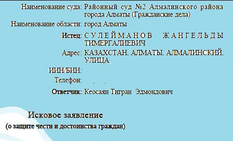 — Вчера я подал иск в Алмалинский районный суд города Алматы. Прошу у суда одного, чтобы Кеосаян на своем YouTube-канале выложил новое видео, что он неправ. Больше от него ничего не надо", — написал на своей странице Facebook известный казахстанский адвокат Жангельды Сулейманов.