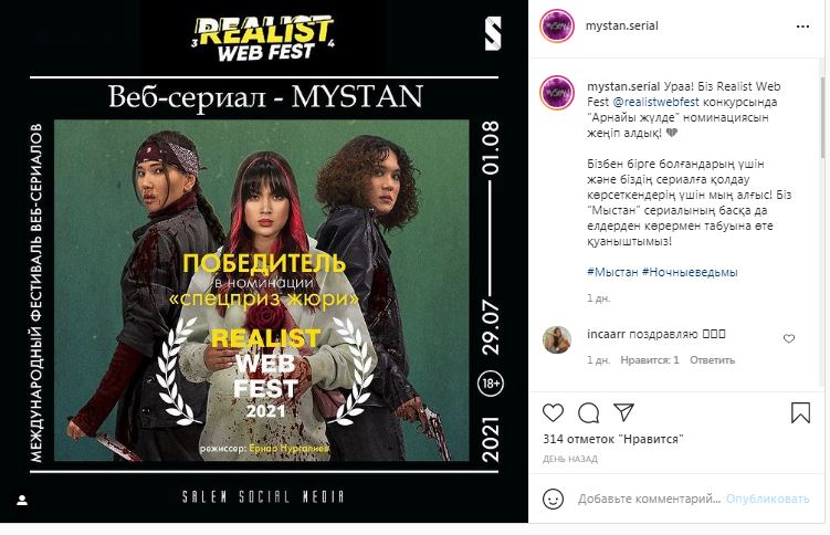 «Мыстан» — сериал о мести женщин за бытовое насилие, которые не нашли защиты у закона и решили взять дело в свои руки. Главные роли в нем сыграли Акбота Сейтмагамбет, Асель Калиева, Жасмин Салихова, Жандос Айбасов, Елжас Рахимбеков и Данияр Кожахан.