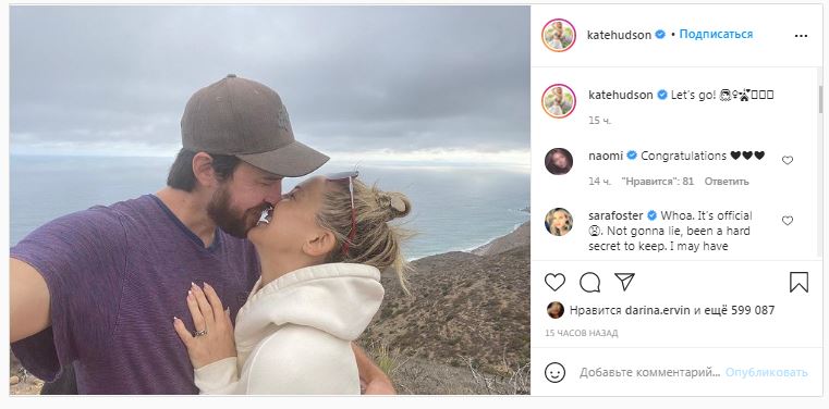 Хадсон разместила романтичную фотографию с возлюбленным на фоне моря и дополнила ее свадебными смайликами.