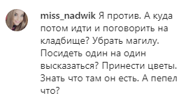 "Хотим разработать проект и построить крематорий (не за государственные деньги). Но не знаем, как отреагирует народ. Ребята, как вам такая идея? Хотели бы, чтобы вас или ваших близких кремировали? Какие за и против?"