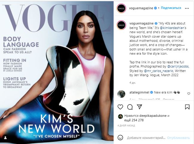 «Я так долго старалась сделать других людей счастливыми, но за последние два года поняла, что нужно подумать о себе. И это хорошо. Даже если это привело к разводу, важно быть честным с самим собой по поводу того, что делает тебя счастливым. Я выбрала себя. Я думаю, это нормально — выбирать себя», — рассказала Ким.