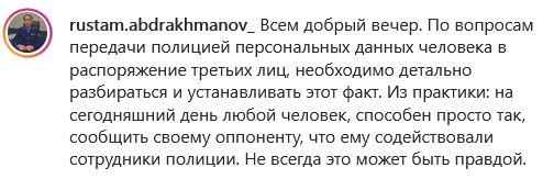 "Уважаемые друзья, сейчас идет в Instagram хайп, идет информационный буллинг на меня, на еще кого-то, не буду называть имена. Все нормально, скажу, все хорошо, все под контролем. Обвиняют — вообще нет основания. Мы подали с адвокатом жалобу. На все подали жалобу. Прокурору города. Так что будем разбираться", — сказал блогер.