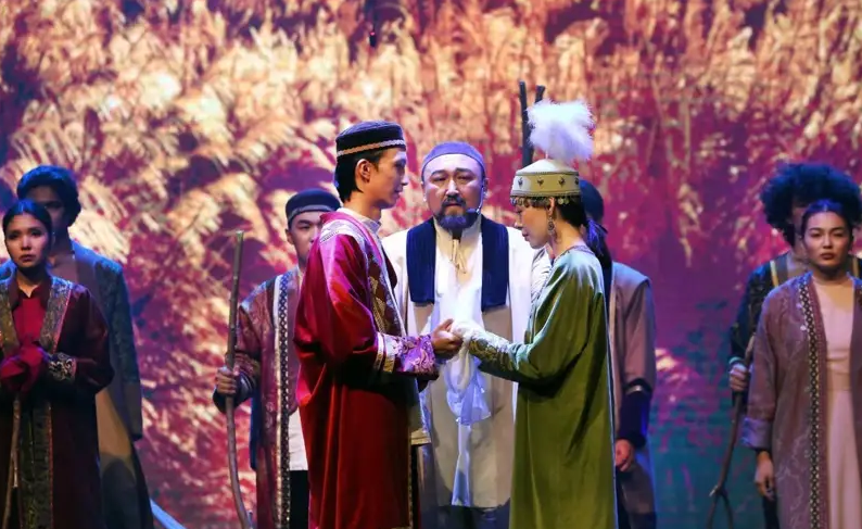 Спектакль сопровождался хоровым исполнением коллектива Национальной академии искусств имени Жургенова. Уникальную атмосферу дополняло инструментальное исполнение группы Steppe Sons.