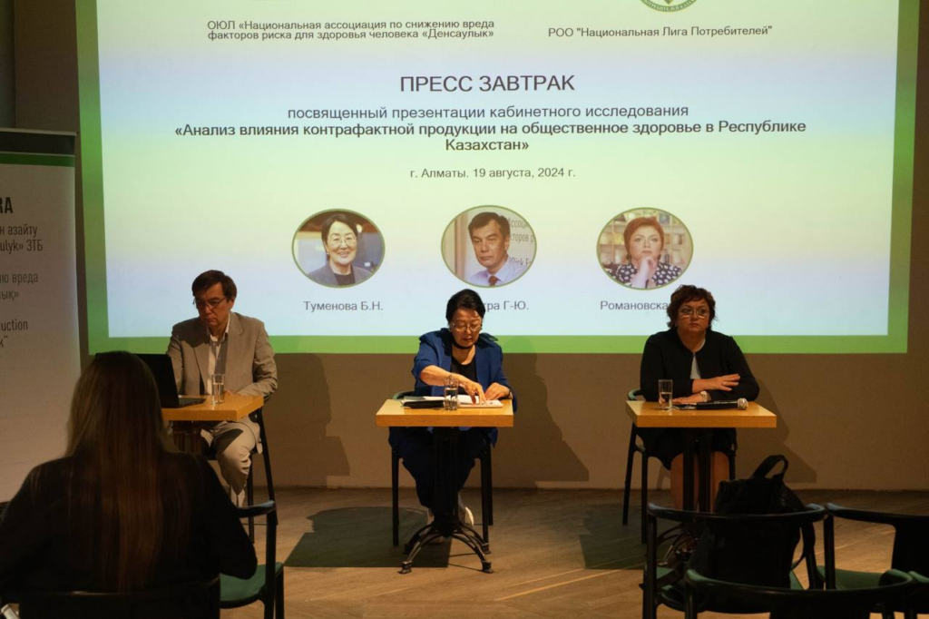 ОЮЛ «Национальная ассоциация по снижению вреда факторов риска для здоровья человека «Денсаулык»и POO «Национальная Лига Потребителей Казахстана»представила результаты мониторинга ситуации контрафактной продукции, как важного фактора риска для здоровья казахстанцев. Изучение отечественного рынка было проведено по 4 группам товаров народного потребления: продукты питания, лекарства и медицинские изделия, табачные продукты, алкогольные и не алкогольные напитки.
