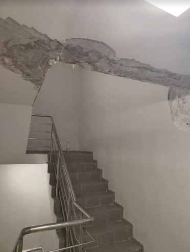 «Я живу на шестнадцатом этаже, в десяти сантиметрах от меня протекает крыша уже 2,5 года. Дефектные акты составляют, но никакой реакции нет. Жильцы писали, говорили, все бесполезно. Проблема еще в том, что обшивка дома падает. Например, я был свидетелем того, как на машину облицовка упала с шестнадцатого этажа и пробила лобовое стекло. Полифасад летел с большой высоты, инерция была бешеная. Ремонт автомобиля обошелся хозяйке в 3,5 млн тенге. Облицовка может упасть и на людей. Передо мной упала обшивка высотой 2,2 м шириной 0,8 м, где-то 15 кг весом. Мы сообщили об этом застройщикам, они просто убрали упавшую обшивку и больше ничего не сделали. Я от лица всех жильцов хочу сказать, что по технической части в этом ЖК ничего не делается. Если спуститься в подземный паркинг, то можно увидеть, что все стены текут, в районе выключателей проводка бьет током», — рассказал житель «Терры» Арман Ержанов.