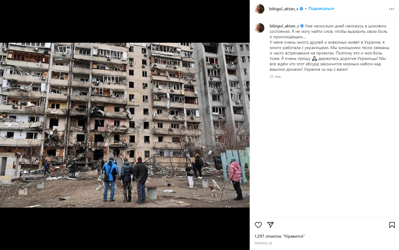 С тех пор карьера актрисы шла в гору, а в январе прошлого года Бибигуль рассказала, что приняла решение покинуть Казахстан и продолжить строить карьеру в России, чем вызвала ряд неоднозначных реакций в соцсетях. В начале вторжения России в Украину актриса опубликовала на своей странице в Instagram фото разрушенной многоэтажки с сопровождающим текстом: