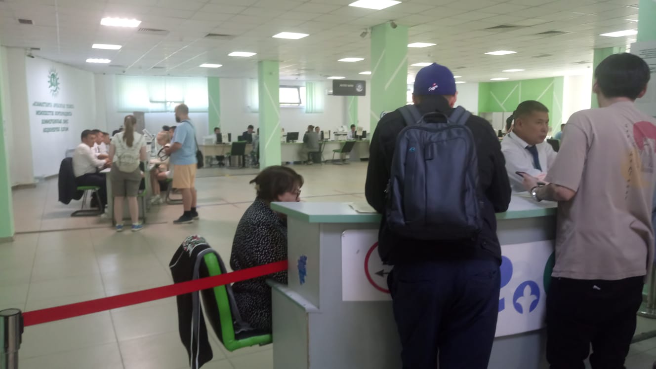 Приезжие из разных городов России сидят с раннего утра, чтобы подать документы на получение ИИН. Кто-то спит на скамейке, кто-то делает это даже стоя. Операторы принимают всех по талонам электронной очереди. Чтобы разгрузить ЦОН, группами вывозят людей на автобусе в Центр обслуживания Наурызбайского района. Сотрудники Жетысуского ЦОНа затруднились сказать- сколько они обслужили посетителей за несколько дней, поток людей огромный!