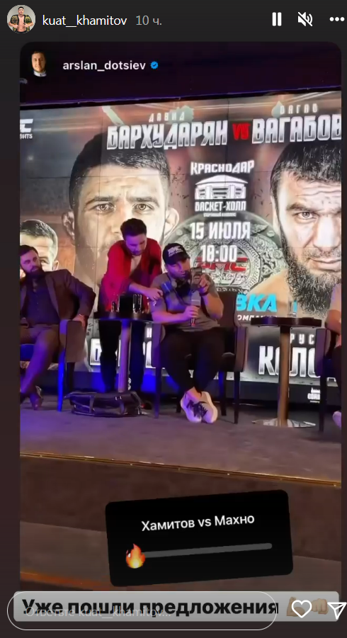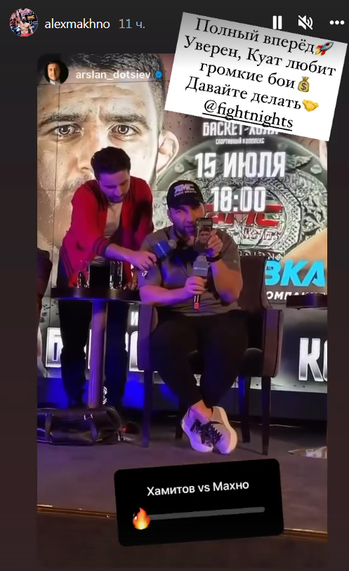 Российский спортивный журналист Арслан Доциев предложил Хамитову сразиться с Алексеем Махно. Хамтов во время выступления Доциева дал понять, что не против этого боя.