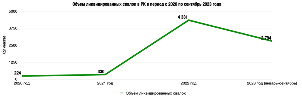 В 2023 году, с начала мая, было обнаружено 5578 свалок, из которых была устранена половина. Динамика очень положительная, так как технологии и инструментарии, которые мы сейчас имеем, позволяют более точно и эффективно бороться с мусором. Проблема низкой ликвидации, по словам министра экологии Е.Нысанбаева, заключается в плохой организации работы акиматов и в слабом контроле строительных компаний, которые в большинстве своем несут ответственность за правильное обращение с отходами.