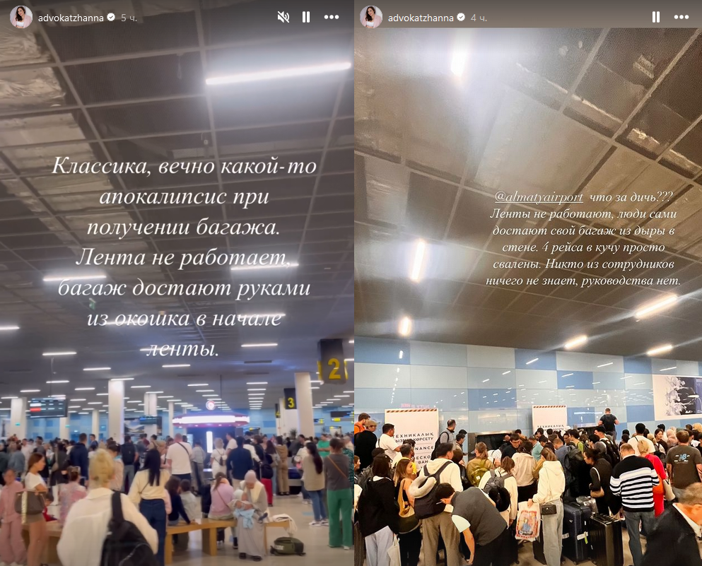 Багажный коллапс начался в аэропорту Алматы еще вечером 1 сентября, за несколько часов до прилета Жанны.