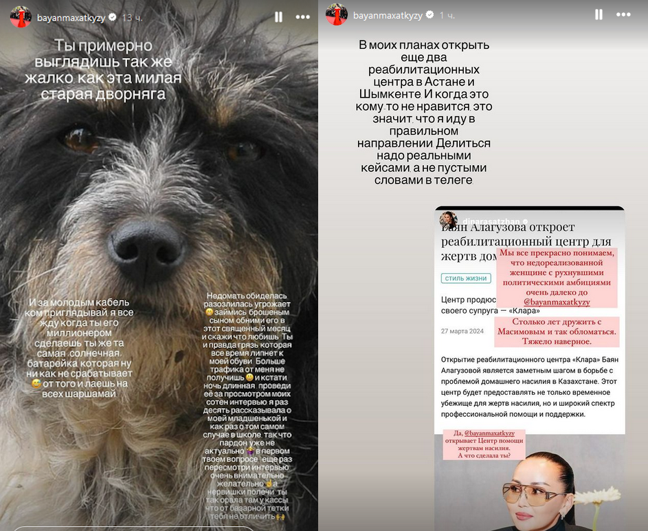 Баян Алагузова вскоре после публикации Даны высказалась в Instagram. Высказывание получилось резким и частично нецензурным.
