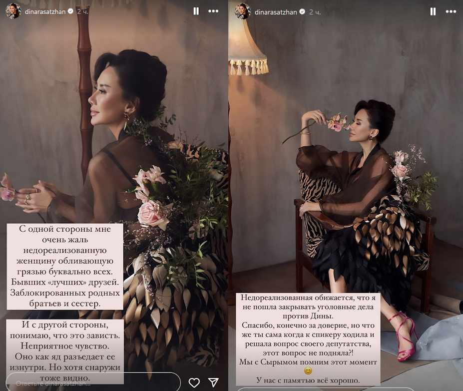 Дана опубликовала скриншоты данных сториз в своем Telegram-канале, что подтверждает предположение об адресатах упомянутых ранее публикаций