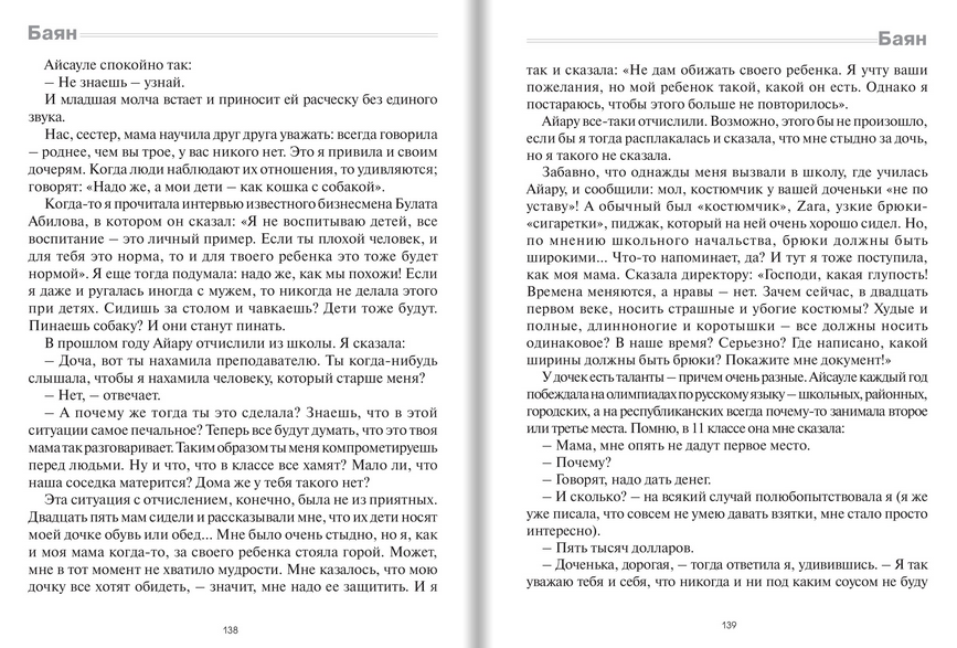 Об инциденте со своей младшей дочерью, Айару Бакытбек, Баян действительно рассказывала как минимум в одном интервью, хотя и не слишком детально. Она вспомнила, что ее вызвали в дорогую частную школу, где тогда училась 12-летняя Айару, и 25 матерей рассказали о том, как плохо Айару обращается со своими одноклассниками. В итоге девочку исключили. В ответ на расспросы матери она не смогла внятно ответить о причинах своего поведения.