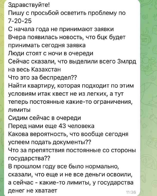 "Ну а мы продолжаем получать негативные отзывы о программе 7-20-25, и укоренившееся мнение о том, что в Казахстане участие в госпрограммах — настоящие «голодные игры». Шансов на логическое объяснение всему происходящему просто нет", — говорится в сообщении.