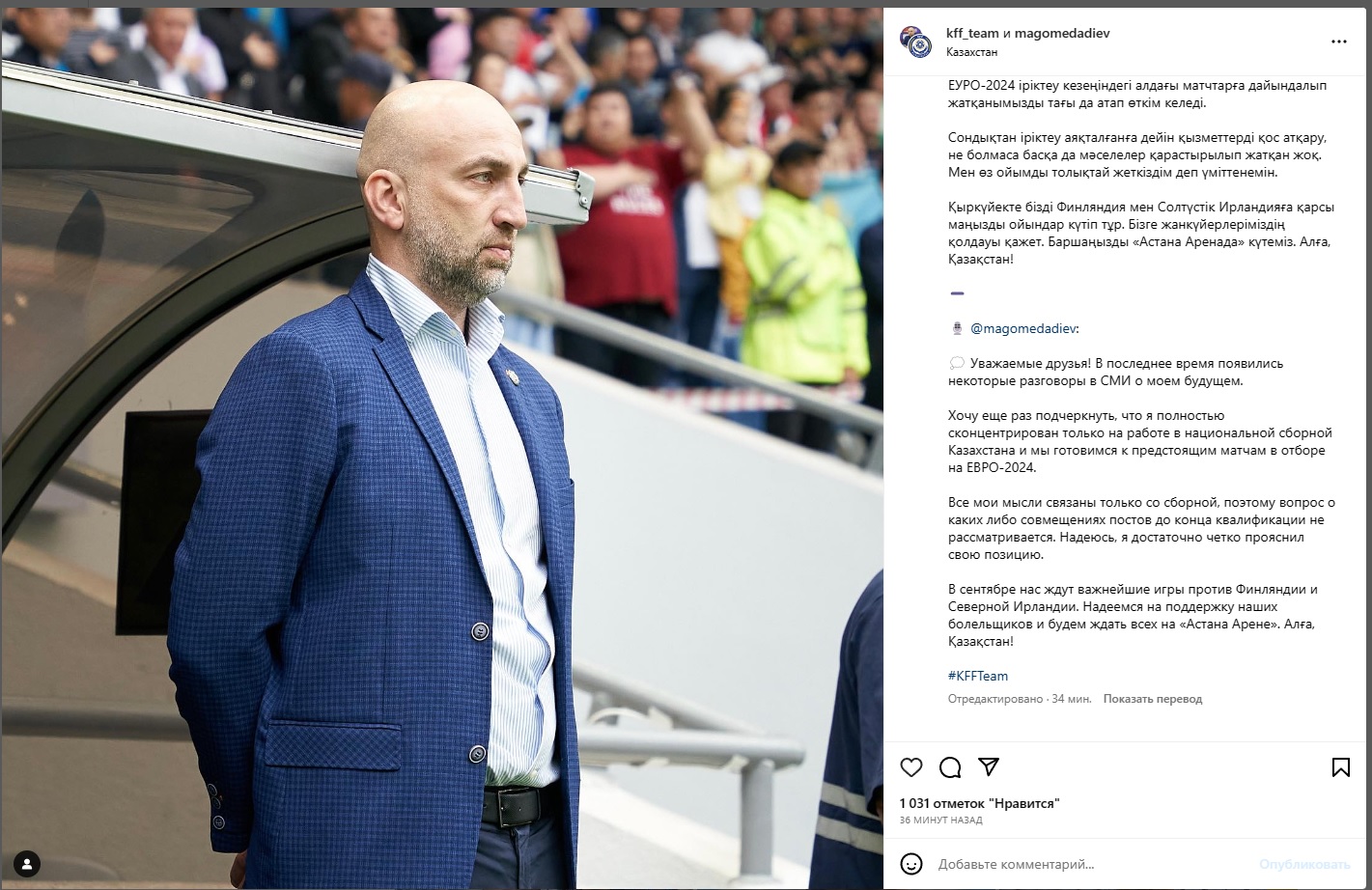 Хочу еще раз подчеркнуть, что я полностью сконцентрирован только на работе в национальной сборной Казахстана и мы готовимся к предстоящим матчам в отборе на ЕВРО-2024.