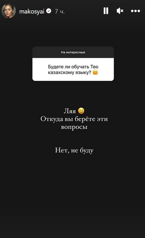 Возможно, именно поэтому один из подписчиков Макпал спросил ее, будет ли она учить своего сына Теодора казахскому языку.