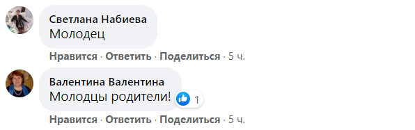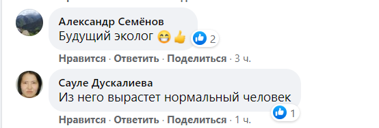 "Молодец", "Молодцы родители!"", " Есть у него жилка предпринимателя, значит, не будет лодырем", "Будущий эколог", "Из него вырастет нормальный человек", — пишут комментаторы под публикацией.