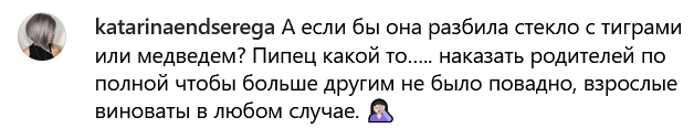 У других вызвало вопрос качество стекла, которое так легко разбила маленькая девочка, при том, что за ним находятся дикие животные.