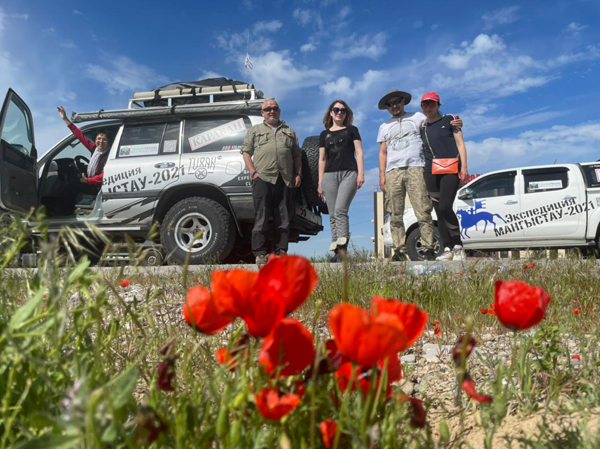 Другим радостным событием в этот день стала встреча с пятым экипажем экспедиции – “Питер” приехал с севера страны, из Петропавловска. Ужинали все вместе и затемно. После трудной дороги – это было истинным наслаждением. Но только приготовились к отдыху, как ночную мглу нарушили “пение” и “хохот” шакалов. Их жутковатая музыка звучала устрашающе. К тому же под утро эти чудища из семейства псовых напугали девушек экспедиции, подобравшись к палаткам и вынюхивая съестное…