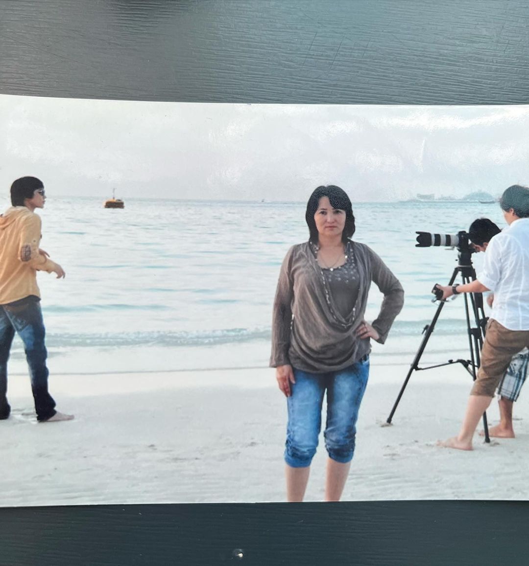 Первая фотография — ее портрет, вторая сделана на пляже, передает медиа-портал Сaravan.kz. Там же на заднем плане виден Кайрат Нуртас, который участвует в профессиональной фотосессии.