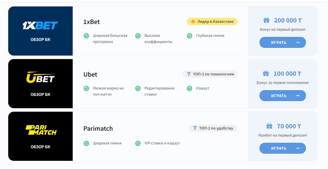 Сравнение букмекеров Казахстана