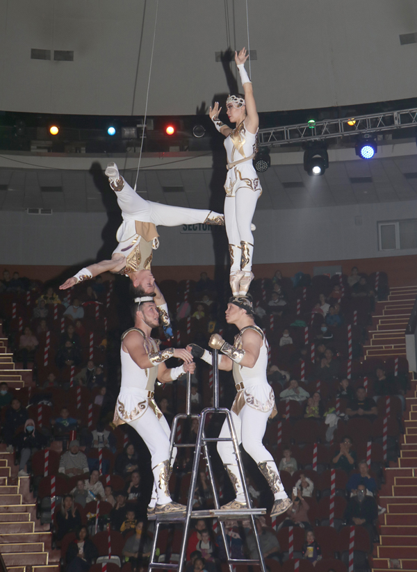 Акробаты-эквилибристы на переходной лестнице под руководством Адлета ТИКАНОВА представили номер, который на международных фестивалях брал золото, бронзу.