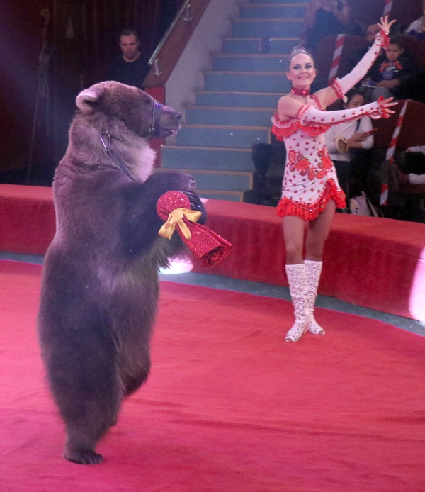 – Медведи разные по характеру, как люди: есть добрые, но не очень умные, есть добрые и умные… Тишка у нас с жестким характером, но вовсе не злой, – рассказала супруга дрессировщика Ольга. – А предыдущий наш медведь, тоже Тишка, был ростом 2 метра 65 сантиметров, весил 585 килограммов. При этом был душкой. На одной ноге танцевал, ходил по проволоке на передних лапах. За свои достижения даже попал в Книгу рекордов Гиннесса. Умер в возрасте 30 лет от старости.
