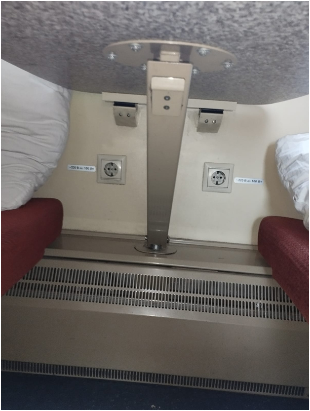 В купе удобные диваны, которые на ночь превращаются в такие же удобные кровати. Под столом две (!) розетки. Поэтому никто не бегал по вагону, выискивая, где бы зарядить телефон.