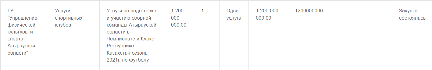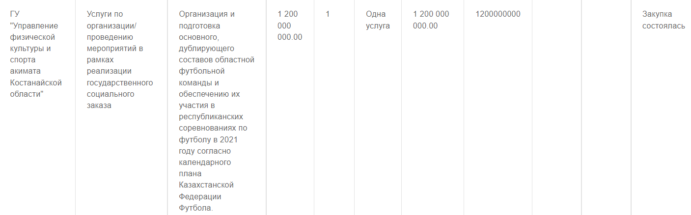 Казахстанские акиматы действительно не жалеют колоссальных средств на подготовку футболистов в своих регионах. Например, управление физической культуры и спорта Кызылординской области в феврале этого года опубликовало тендер на закуп услуг по подготовке областной футбольной команды для участия в ряде чемпионатов республики. На это планировали выделить 1 663 430 000 тенге.