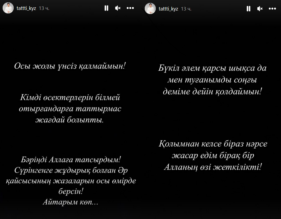 Даже если весь мир выйдет против, я буду поддерживать своих близких до последнего вдоха! Я могла бы сделать некоторые вещи, но Аллаха достаточно!" — написала Дина.