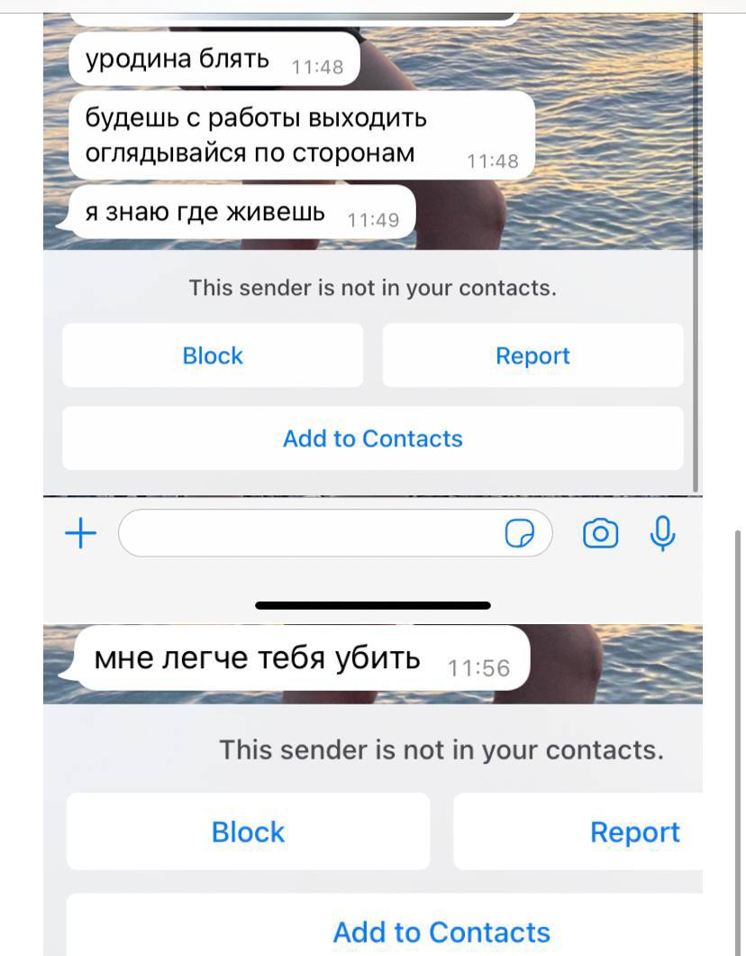 Также пострадавшая прилагает переписку с этим человеком, где он оскорбляет её и угрожает расправой: