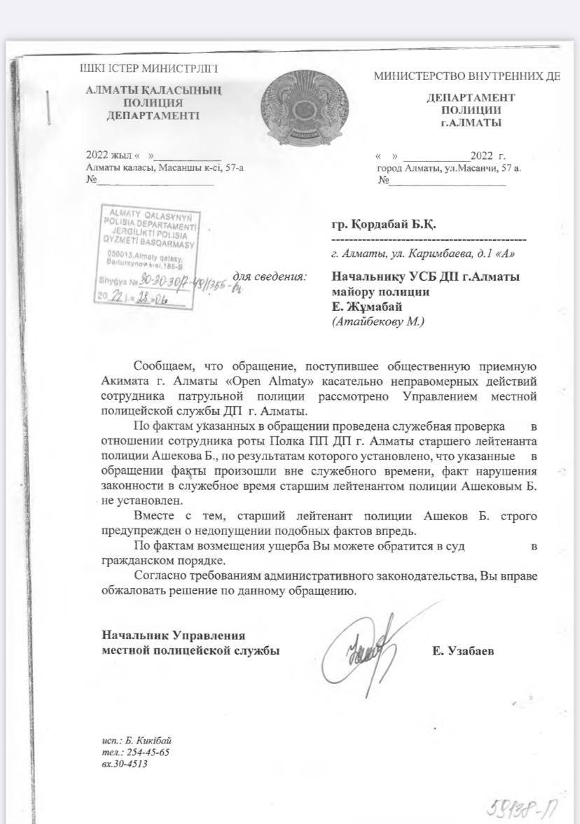 В телеграм-канале kozachkow появилась история девушки, которая пострадала от рук полицейского, передает медиа-портал Сaravan.kz.