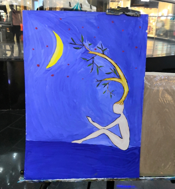 На недавней выставке в столице Асель продемонстрировала работы Майи и других авторов, нанесенные на футболки, посуду, сумки и сувенирные изделия.