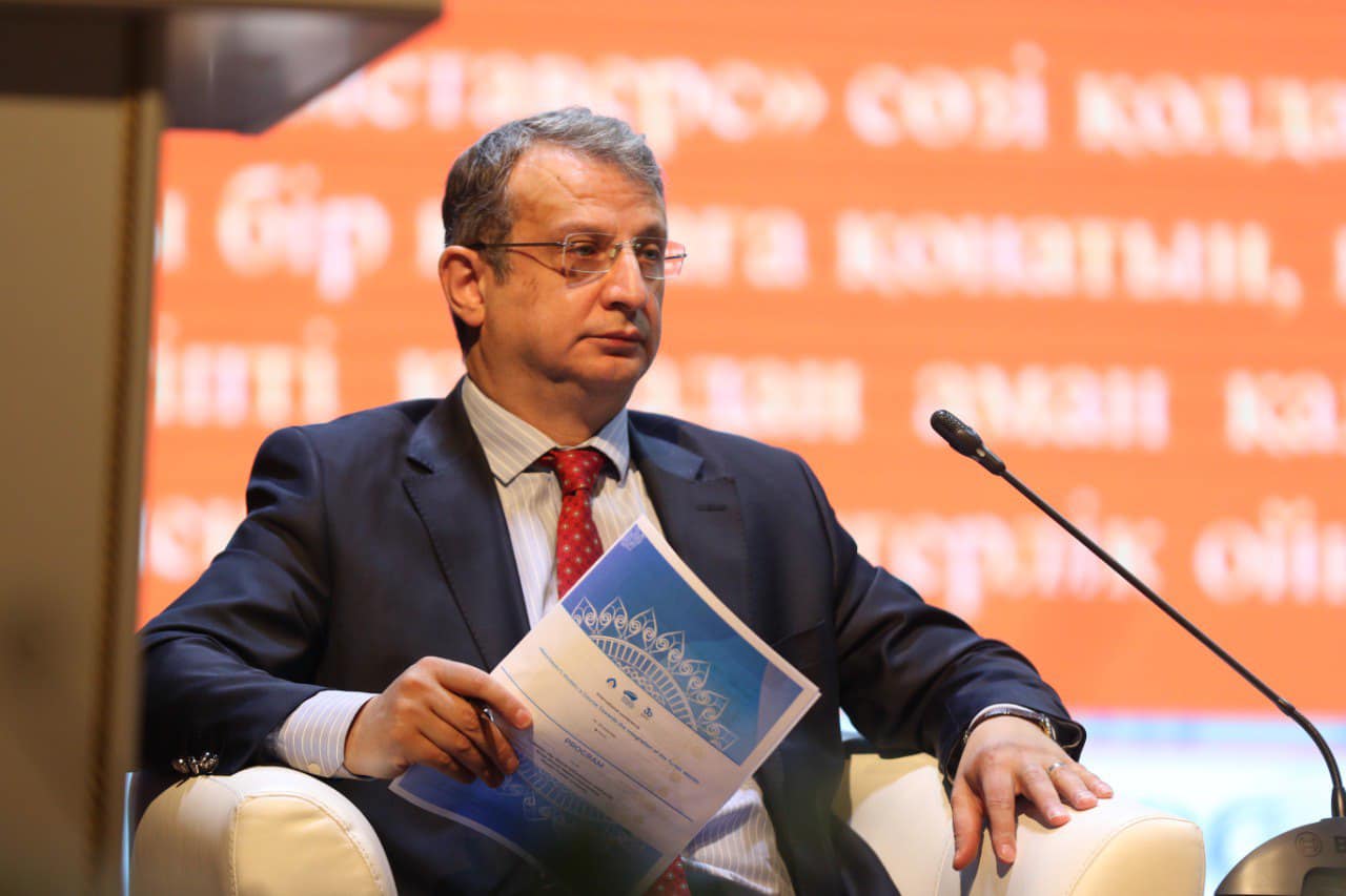 О роли Туркестана и наследии Ходжи Ахмеда Ясави для тюркского мира рассказали ректор кыргызско-турецкого университета «Манас» Алпаслан Джейлан и профессор, заведующий кафедрой казахского языка и тюркского признания Назарбаев Университета Юлай Шамилоглы.