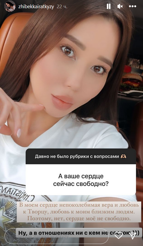 Жибек спросили, свободно ли на данный момент ее сердце, и девушка дала откровенный ответ.